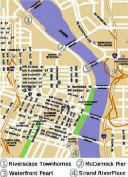 Location South of downtown along the Willamette River. The property is next to South Waterfront Park on Southwest River Drive between Montgomery and River Parkway. This area now has a marina, 2-blocks of retail, athletic club, apartments, and condos. See map of area - PDF format.